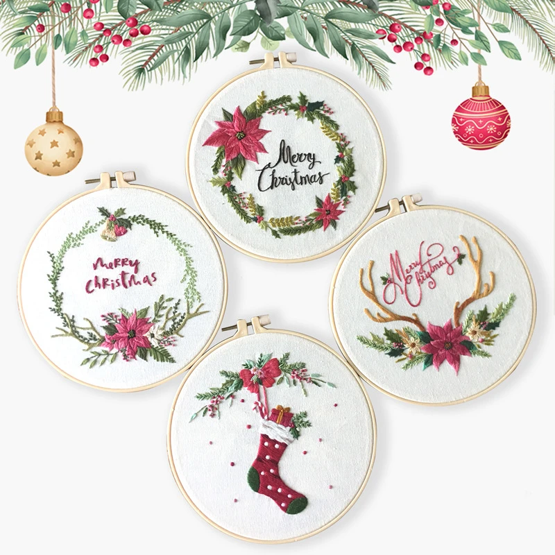 Weihnachten Kranz Stickerei Kits Fur Anfanger Mit Stickerei Hoop Frohe Weihnachten Diy Kreuz Stich Handwerk Handwerk Weihnachten Decor Stickerei Aliexpress